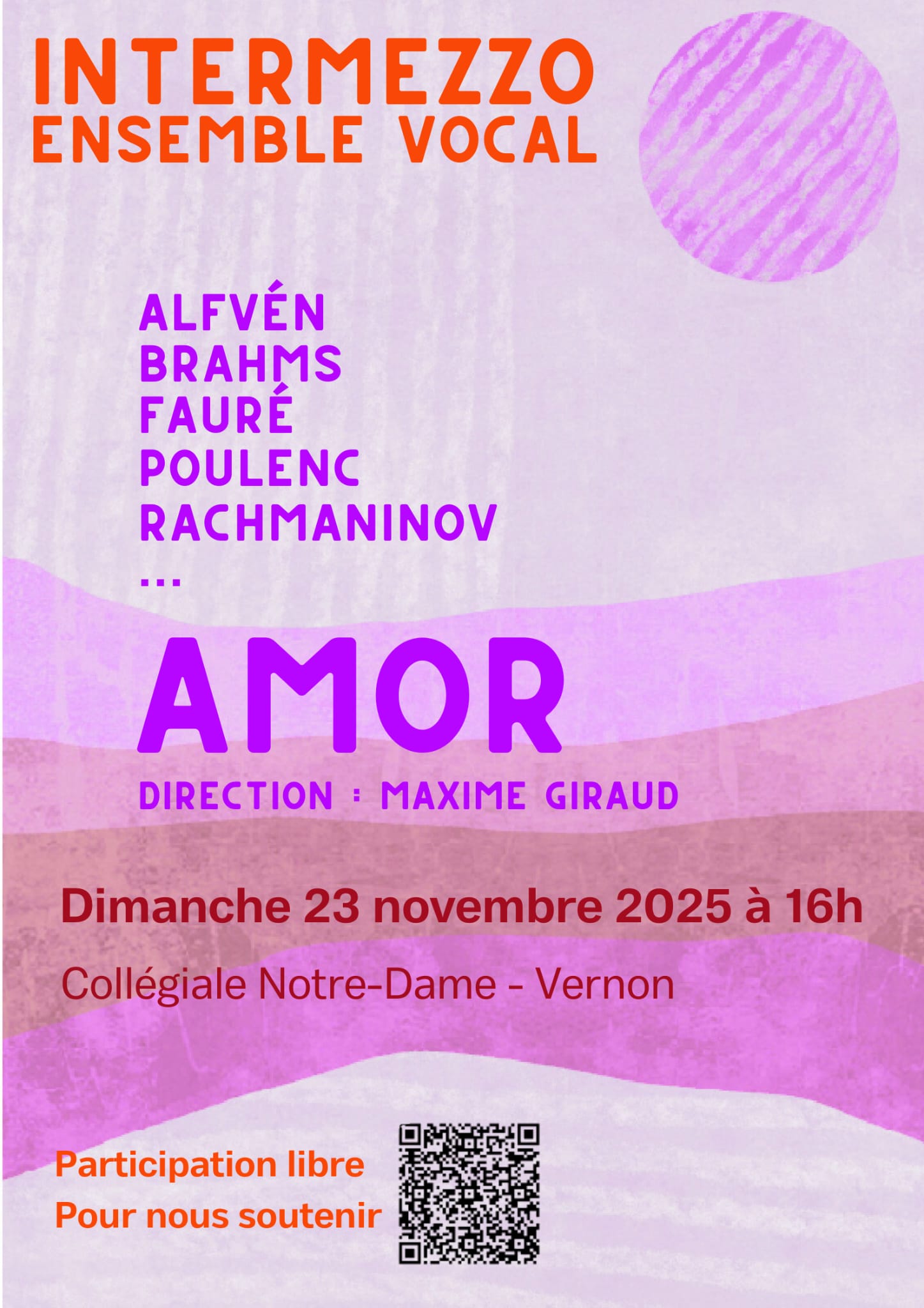 Venez nous rencontrer à Vernon le dimanche 23 novembre 2025 et découvrir notre programme « Amor » entièrement a cappella ! Libre participation Vous pouvez nous soutenir si vous le souhaitez:
